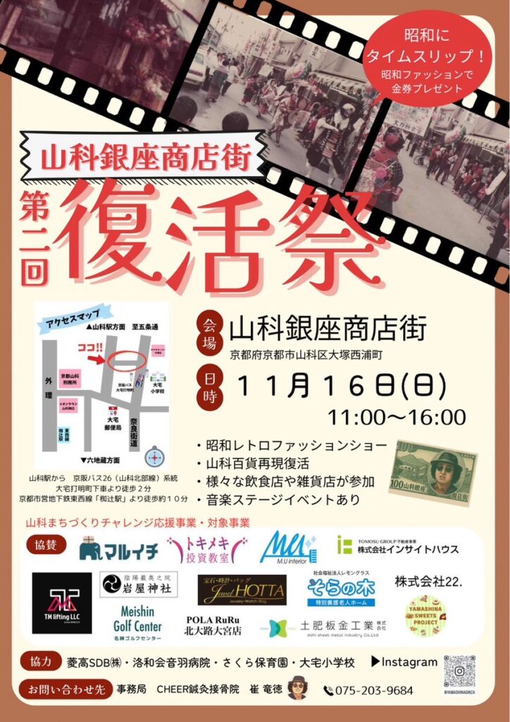 京都市で開催される山科銀座商店街復活祭に協賛させていただき、当社ロゴを掲載していただきました。